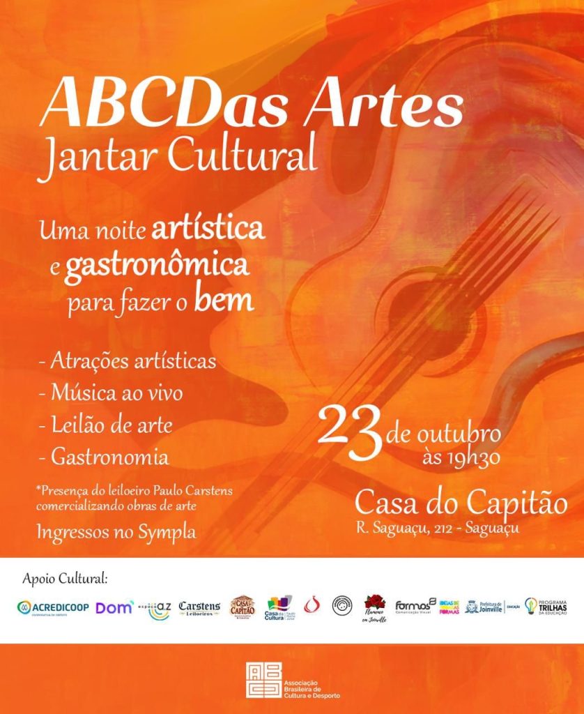 Faça parte dessa noite incrível em prol da ABCD. Ingressos pelo link https://www.sympla.com.br/evento/jantar-cultural-abcdas-artes/3134984