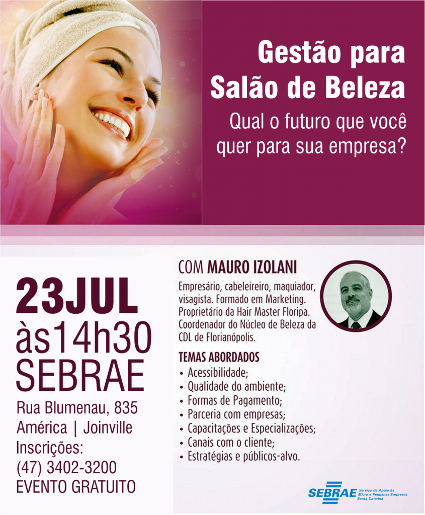 A procura por serviços estéticos faz crescer cada vez mais o mercado da beleza. Clientes exigentes buscam inovações, por isso, investir em qualidade e tecnologia é fundamental para o negócio prosperar. Mas, além disso, ter uma gestão eficiente é outro cuidado para o desenvolvimento da empresa. Pensando nisso, o SEBRAE/SC vai promover no dia 23 […]