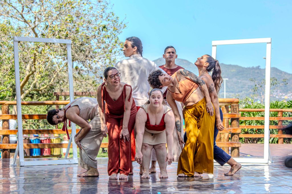 Composto por bailarinos profissionais — entre pessoas com e sem deficiência —, o grupo foge de moldes convencionais para entregar uma performance de alto rigor técnico. O espetáculo propõe uma reflexão sobre o que nos apaga e limita. No palco, o “Desapego” é traduzido pela energia gasta para nos enquadrarmos em moldes sociais e a necessidade vital de rompê-los. A linguagem visual, marcada por roupas fluidas e elementos como molduras e andador, reforça a ideia de ocupação gradual e genuína do espaço. As músicas, chegam no embalo de nos lembrar sobre nossa trajetória, construída por dores e levezas no dia a dia – um espetáculo sensível, que promove um atravessamento na forma de como nos olhamos e como olhamos o outro.
