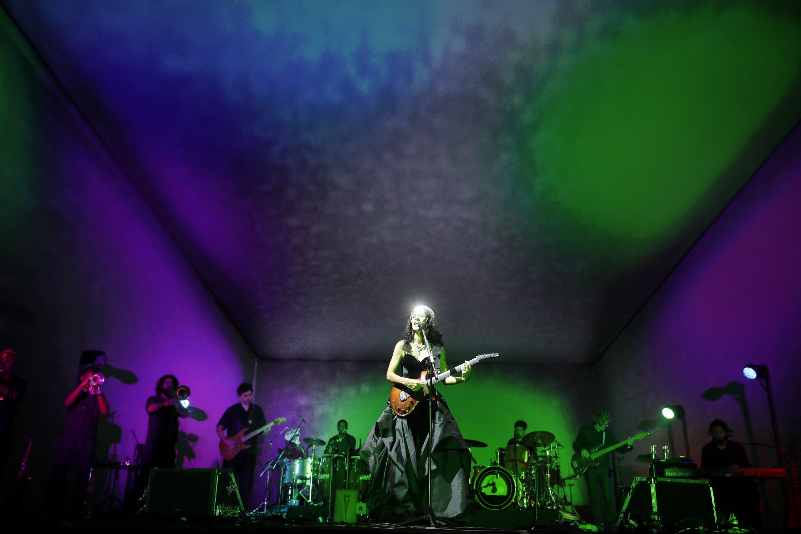 Com direção e concepção visual de Marisa Monte, Cláudio Torres e Batman Zavareze, no palco Marisa é acompanhada por Dadi (baixo, teclado e guitarra), Davi Moraes (guitarras), Pupillo (bateria), Pretinho da Serrinha (percussão, cavaquinho e voz), Chico Brown (teclado, guitarra, baixo e voz), Antonio Neves (trombone, adaptações e arranjos de metais), Eduardo Santanna (trompete e flugelhorn) e Lessa (flauta e sax).