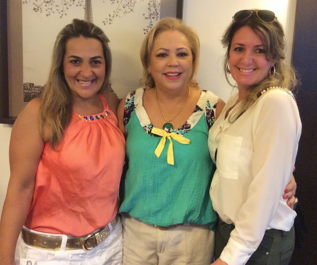 A podóloga Nilza Alves com a aniversariante e Cheila Reis